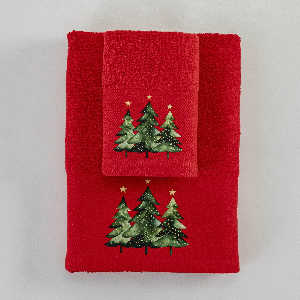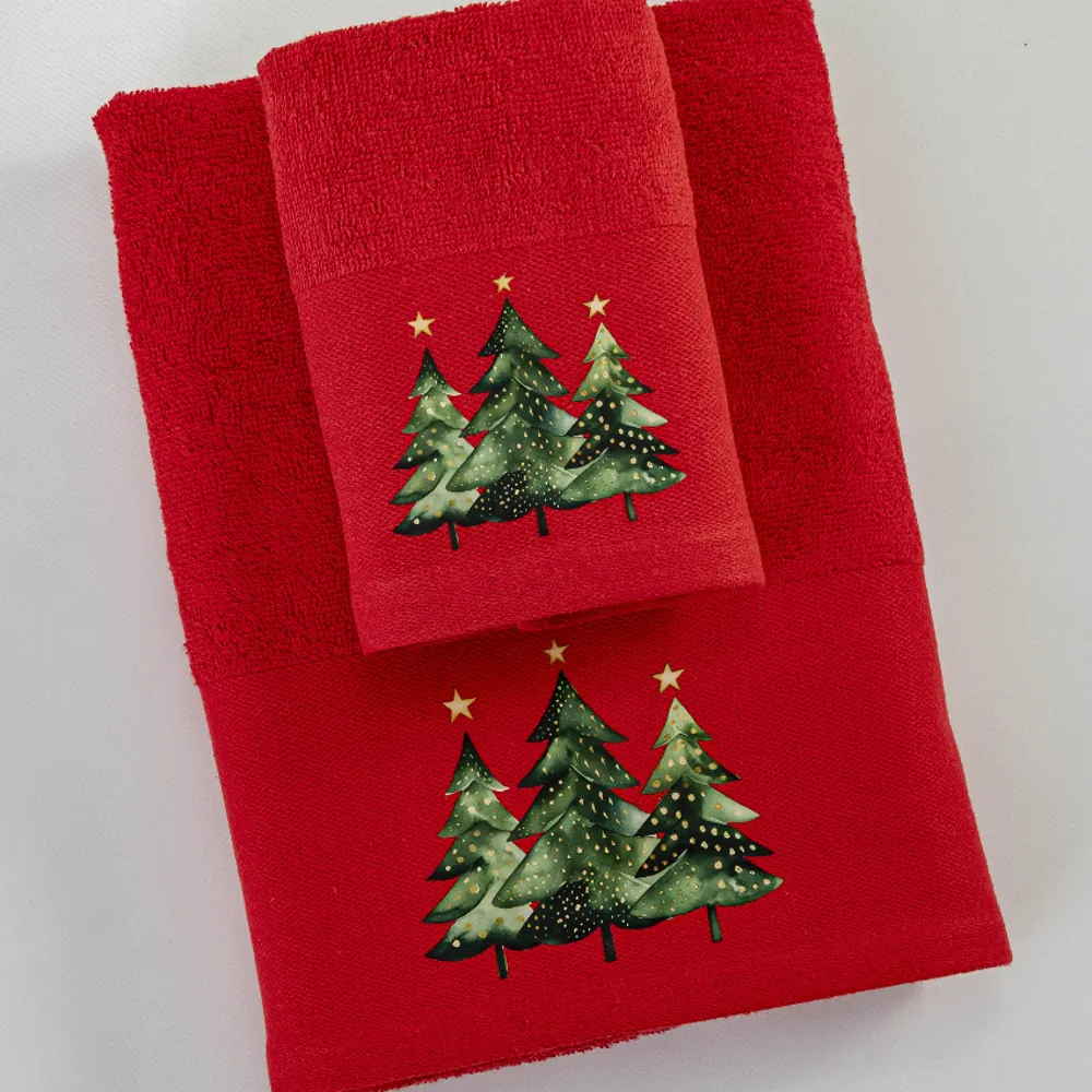 Σετ Πετσέτες 2τμχ Fir Κόκκινο 50×90+30×50 Σε Κουτί Borea ποσότητα