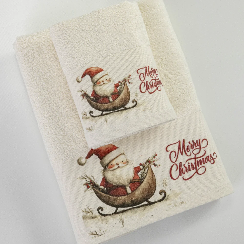 Σετ Πετσέτες 2τμχ Santa’s Sleigh Εκρού 50×90+30×50 Σε Κουτί Borea ποσότητα