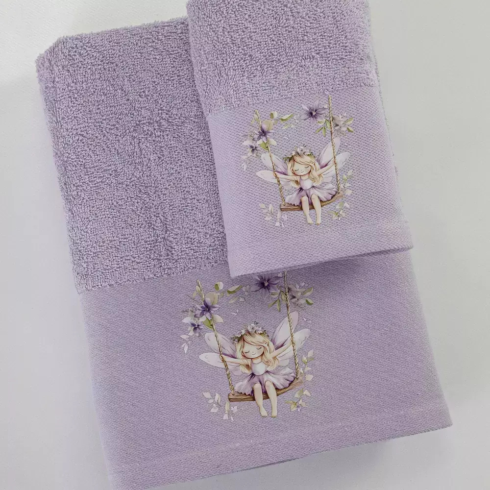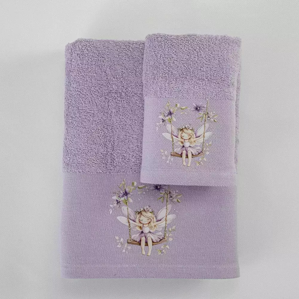 / Σετ Βρεφικές Πετσέτες 2τμχ Bella Λιλά 70×120+30x50cm Σε κουτί Borea